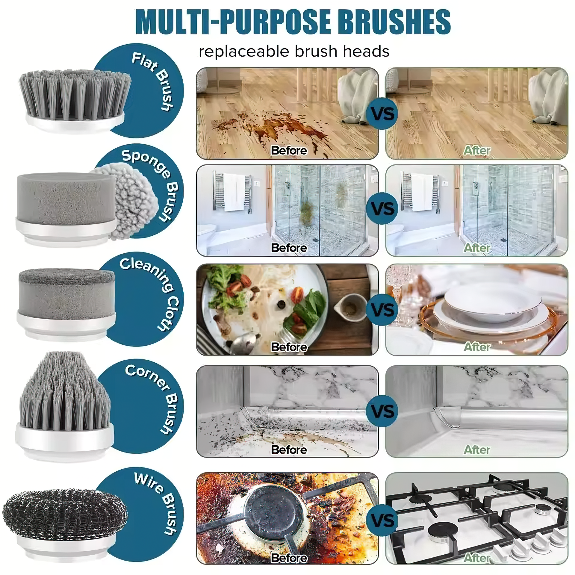 Es ideal para baños, cocinas, azulejos, lavaderos y más. Solo elige el cabezal adecuado para cada superficie.